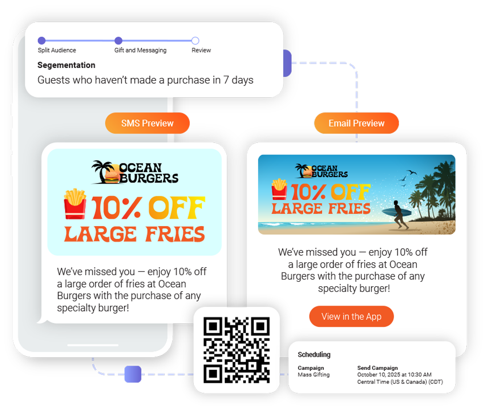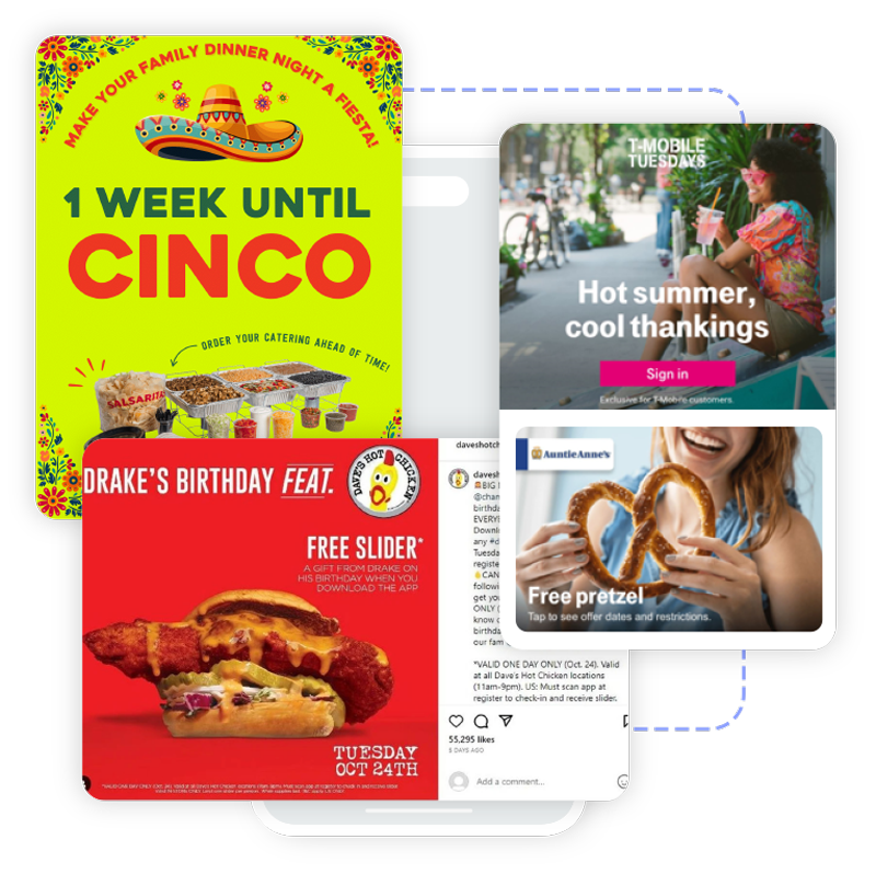 Launch brand-building promotions for holidays, new menu drops, and social tie-ins using flexible campaign workflows.
